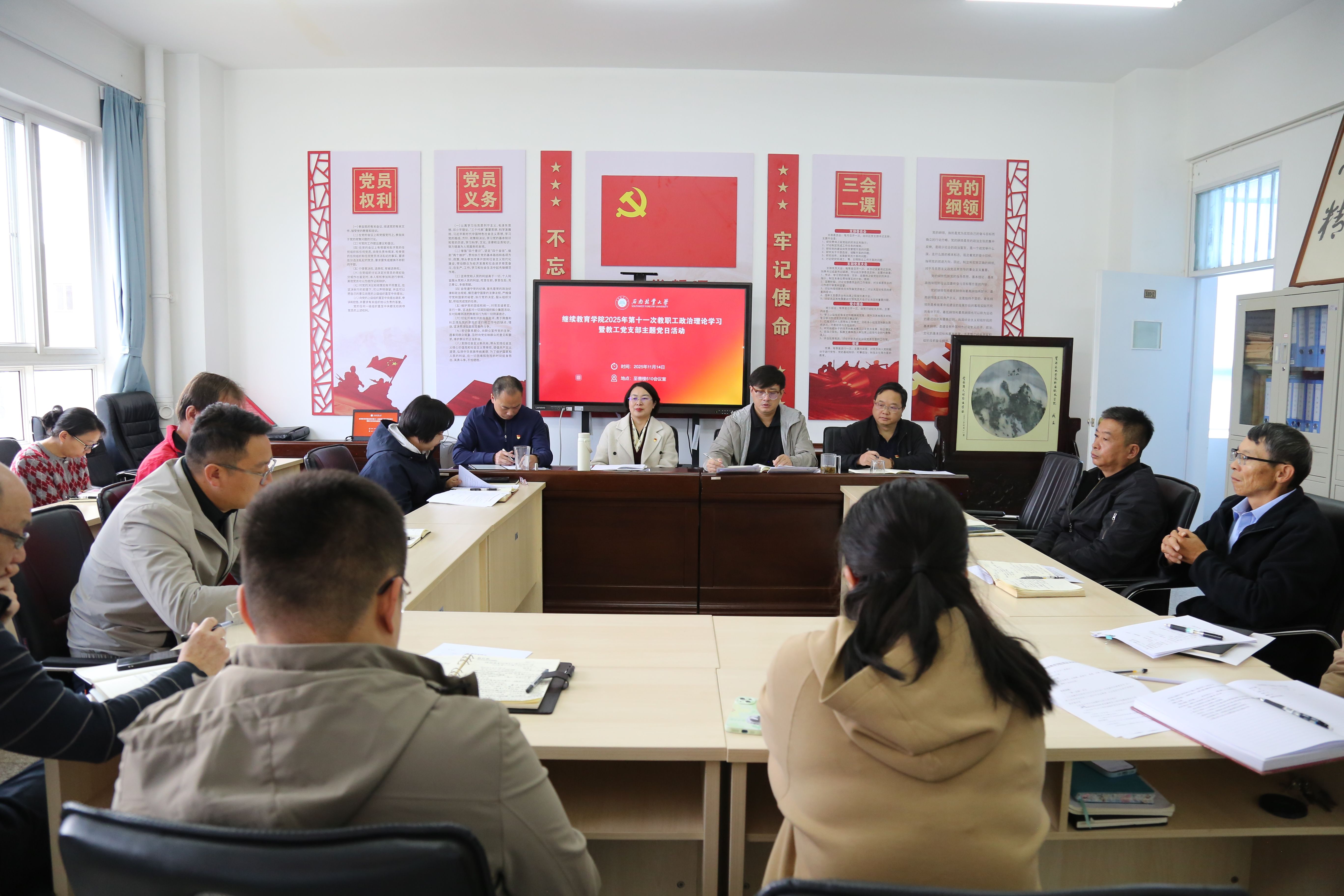 与会党员和入党积极分子结合工作实际交流学习心得。大家一致表示,要将学习贯彻成果切实转化为谋划学院“十五五”发展的具体思路和实际行动,牢牢把握“学历教育规范提质量”这一生命线,着力擦亮“非学历教育树品牌”这一特色牌,为构建服务全民终身学习的教育体系、推动林业继续教育高质量发展、服务教育强国和林业现代化建设彰显担当,贡献智慧与力量。